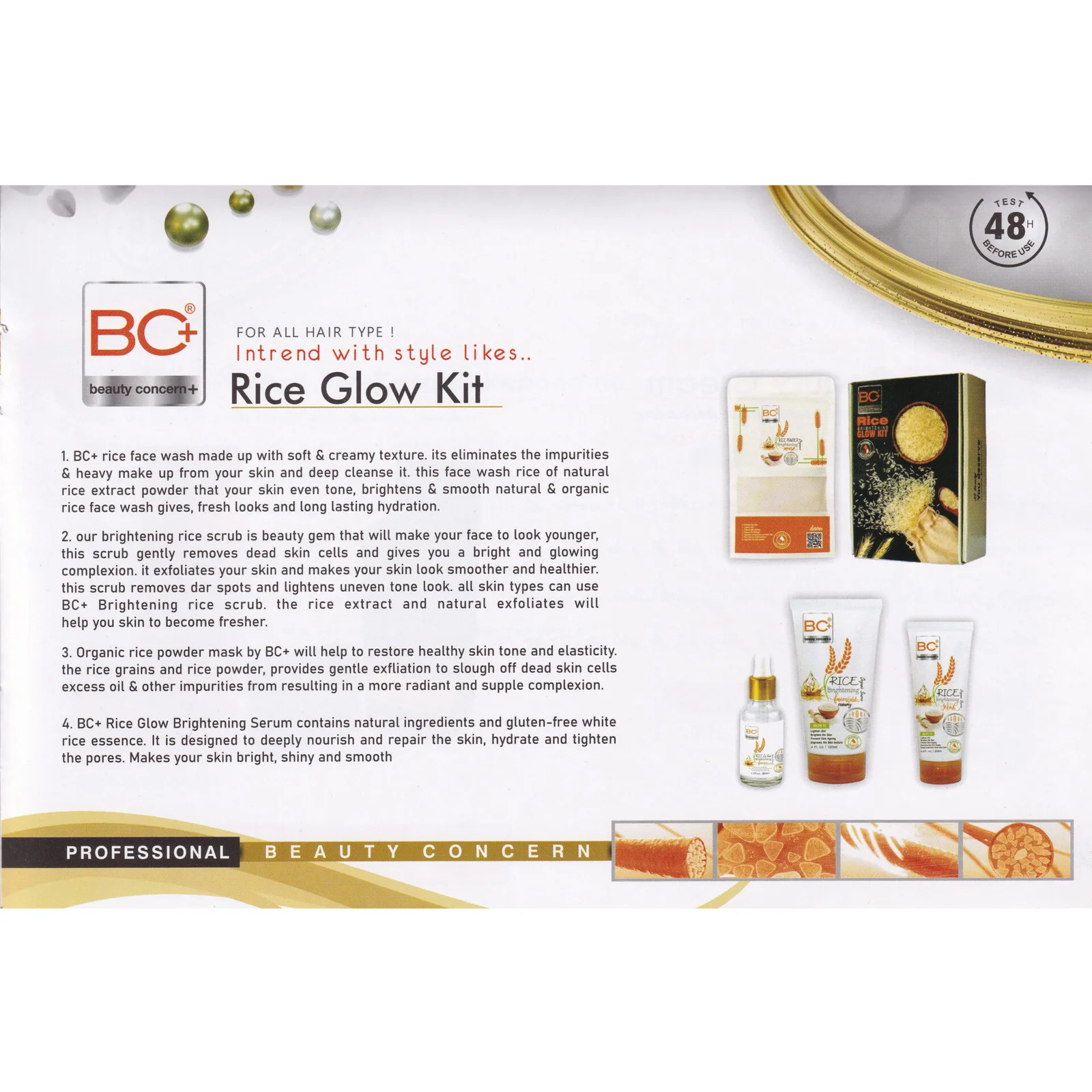 Illuminate your complexion with the BC+ Beauty Concern Brightening Rice Glow Kit, a comprehensive skincare regimen designed to deliver radiant, glowing skin. This all-in-one kit combines four expertly formulated products enriched with rice extract to brighten, exfoliate, and rejuvenate your skin. Ideal for achieving a luminous and even skin tone, this kit is perfect for those seeking a complete skincare solution for a brighter, more radiant appearance.